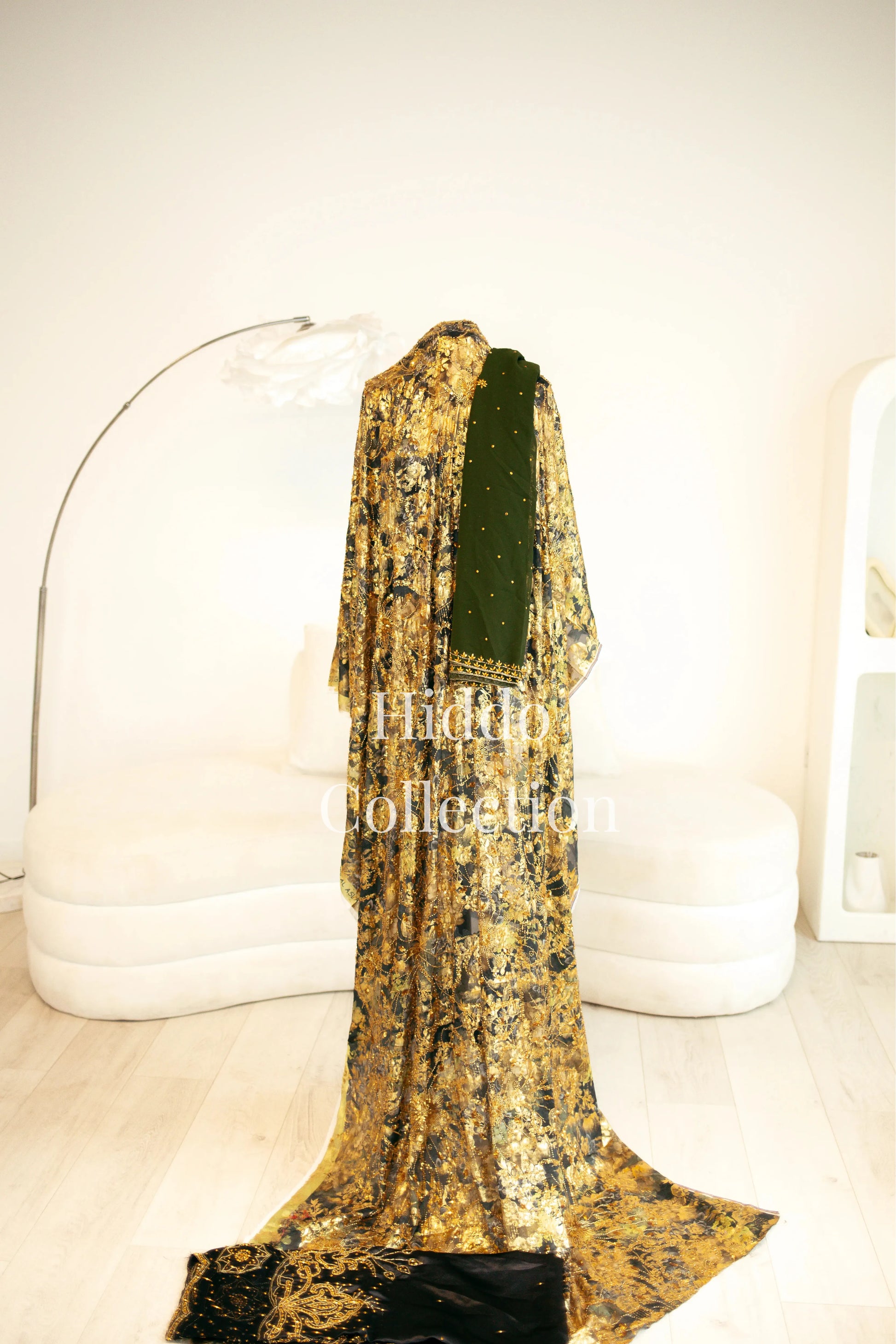 Paired with an emerald green gabasaar (shalmad) and a beautifully embellished black gorgorad.